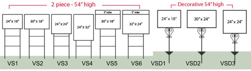 Large (2): 34"x47" Insert 10mm coroplast -30"x40" Price: Frame Only: $145.00 Frame + Signs: (One sided )= $265.00 (two sided)= $385.00 Two metallic legs as bases are included